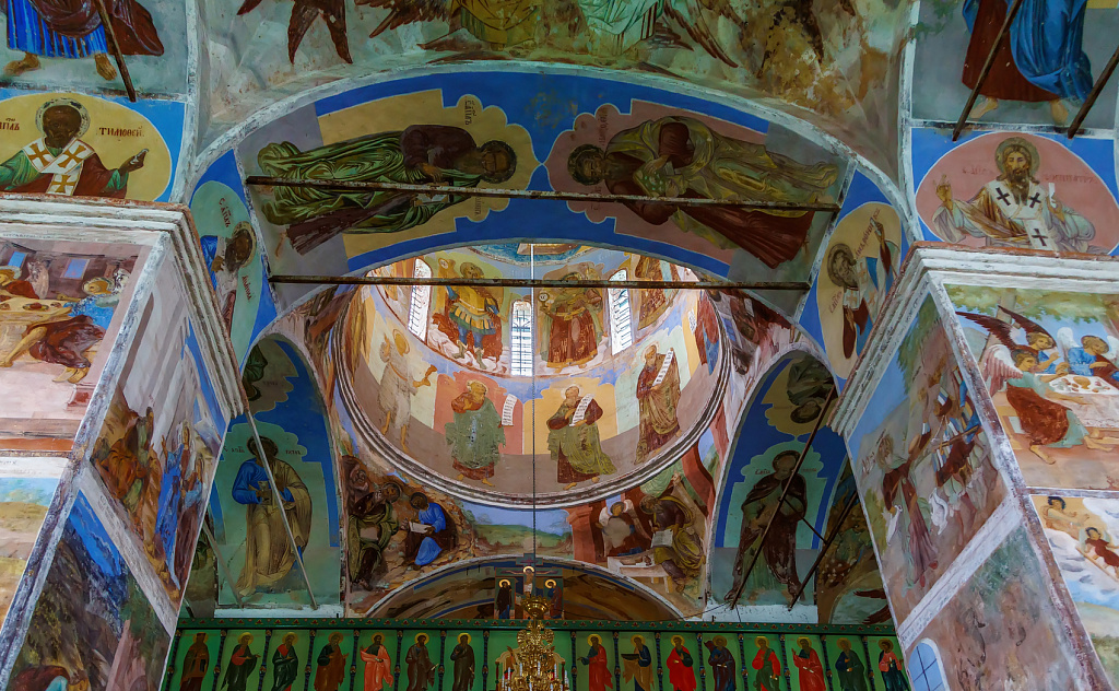 На территории монастыря находятся Троицкий Собор с сохранившимися фресками начала XVIII в., Преображенский Собор, в котором хранятся мощи Александра Свирского, Церковь Захария и Елизаветы с копией Туринской плащаницы, и другие памятники.