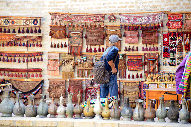 Посещение крытого рынка XVI в., известного как «купеческие купола». Во время посещения открываются золотошвейные, медные, кузнечные и ткацкие мастерские. Прогулка по старому городу Бухары: осмотр комплекса Ляби Хауз XVI-XVII веков с медресе Нодир Диван-Беги, медресе Кукельдаш и ханакой Нодир Девон-Беги.